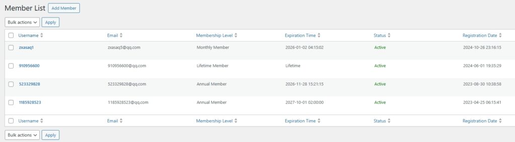 - Perform bulk actions (e.g., delete or modify multiple members at once)