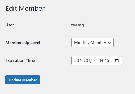 The plugin allows setting membership expiration dates and automatically displays member status (e.g., active, expired, lifetime). Administrators can easily monitor member activity and manage renewals or permission changes.