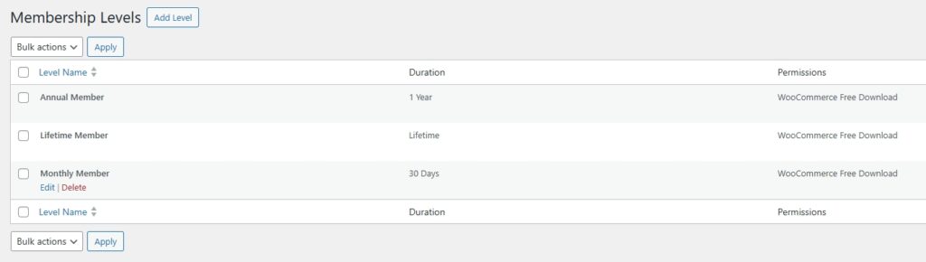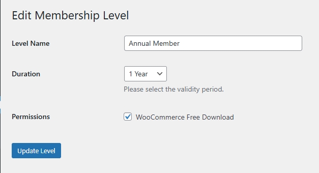 The plugin allows assigning different permissions to each membership level, such as: