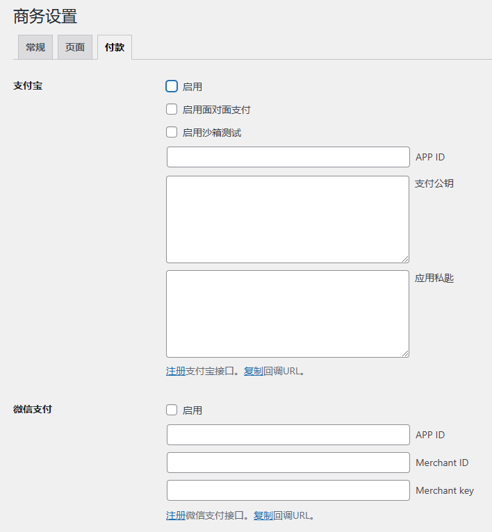 可以自定义结账页面链接、产品页面链接、我的订单链接 - 付款